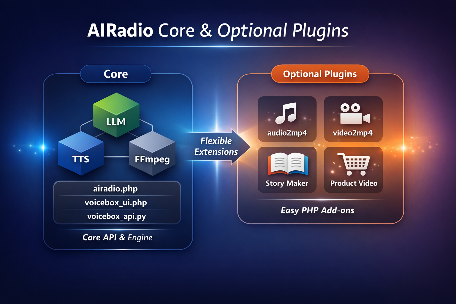 It is designed as an optional, standalone video layer that complements AIRadio,